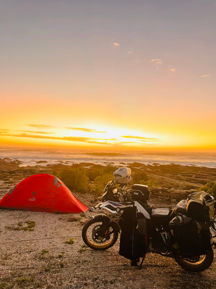 So he went back to the map for a route that would satisfy his craving for adventure yet get him home quickly if needed. The idea of travelling the outline of South Africa was born. He decided to carry out a perimeter check of the country, posting his experience on Instagram as @twowheelrecce. “After my studies, I spent two years in the air force, with dreams of becoming a fighter pilot,” he explains the choice of names. “I essentially wanted to reconnoitre our borders, as if on a military mission, on my 2018 BMW F850GS. I think there must always be something about your route that excites you. A big destination, a specific mountain pass, a challenge of some kind, the highest this or longest that. This gives the ride a bit of purpose, something for the imagination – even though it might only make sense to you.”