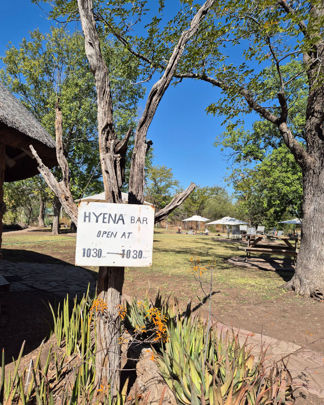 After a long day in the car, a picnic lunch at the campsite at Robins Camp was the order of the day. We found a shady spot and a few familiar faces we had met at the border crossing. After paying our park fees, we checked into their Mopani Chalets, ideal for us as self-drivers because we could park the bakkie right next to our unit for quick access to clothes and goodies.