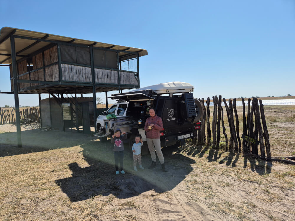 An adventurous road running parallel to the famous Hunters Road brought us to the Kazuma Depression. Nearby, Corner Pan Platform is a rustic overnight spot (with water and shower), run by Zim Parks. It is popular for the views of Corner Pan, a magnet for hundreds of birds and a variety of wildlife.