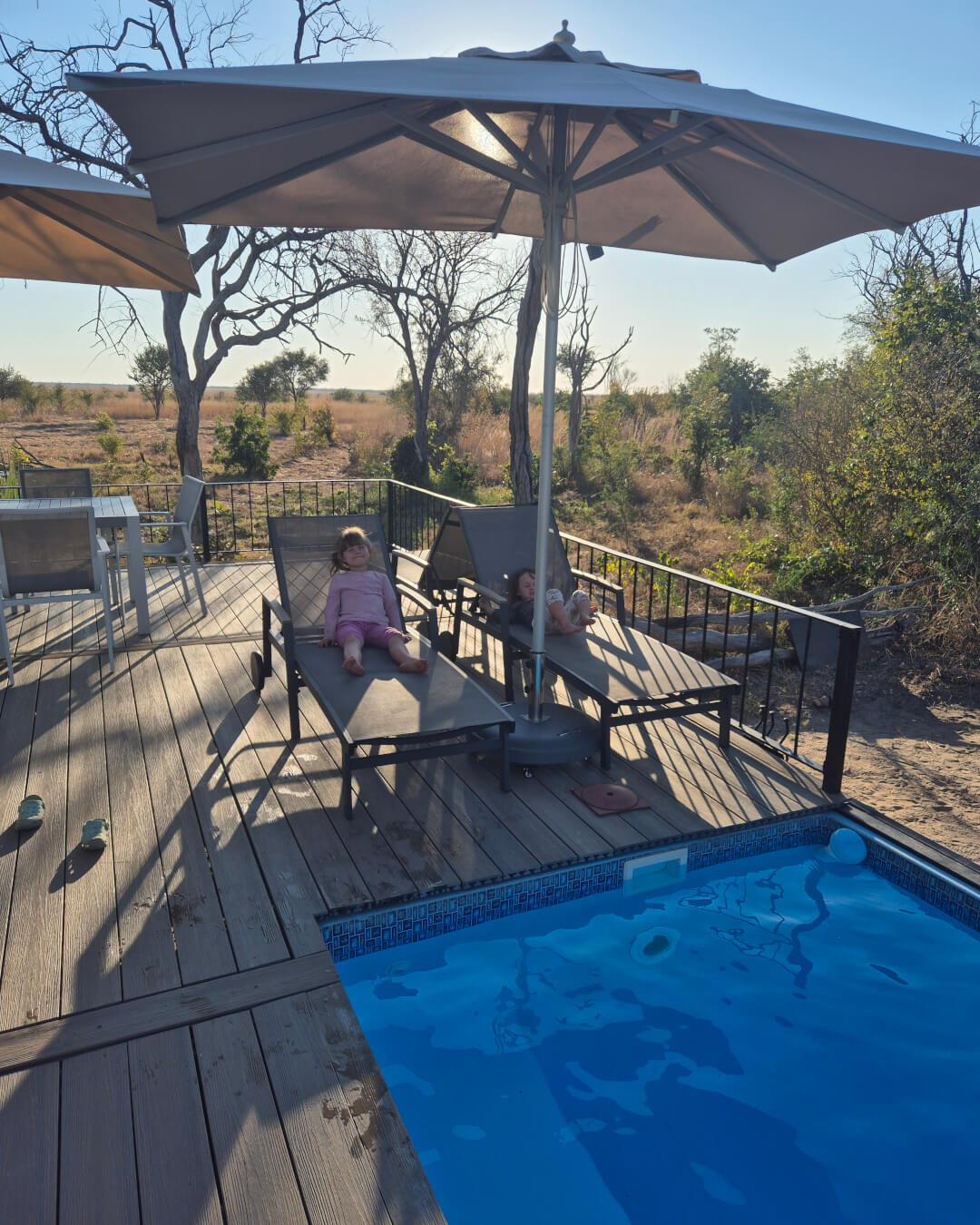 The camp features a well-equipped and secure kitchen area with everything needed to cook up a storm. A braai area next to the lounge deck naturally becomes the heart of the camp, perfect for long evenings around the fire. What’s more, there’s a crystal-clear swimming pool close by for cooling off during the day. Three friendly attendants were on duty and ready to assist with anything we needed. Although the camp is self-catering, a special mention goes to John, who makes a mean plate of scrambled eggs!