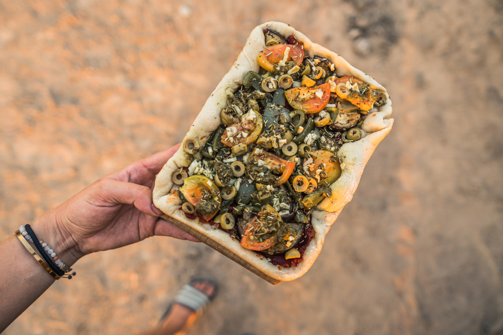 We always try to bring enough food to last us the estimated number of days, and often a lot more. In general we just stock up on as much food as we can before taking on any major remote stretch. Additionally, we have extra cans of beans and some freeze-dried food. Carrying some basics also helps, as we love to get creative with pasta and canned tomatoes, or bake our own bread and pizzas wherever we are.