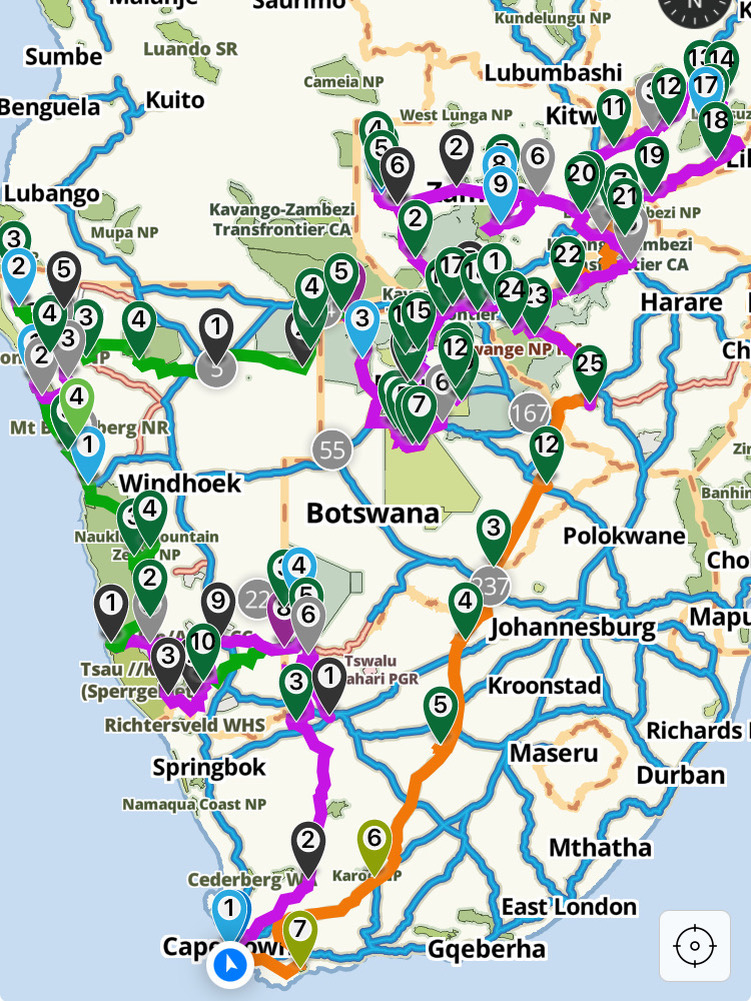 Having done some overlanding in North America, we knew we wanted to set realistic driving limits for ourselves. We therefore determined which campsites would best match our wish not to spend the whole day travelling. The Tracks4Africa maps and Trip Planner were very helpful in this campsite selection process.